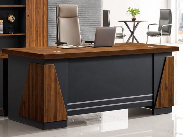 Le bureau de direction AM08-2000 allie élégance, fonctionnalité et modernité, offrant un espace de travail à la fois pratique et prestigieux pour les cadres et dirigeants. Avec ses dimensions de 2000 × 950 × 760 mm, il dispose d’un large plateau permettant d’accueillir ordinateurs, documents et accessoires essentiels tout en garantissant un espace de travail ordonné et confortable.