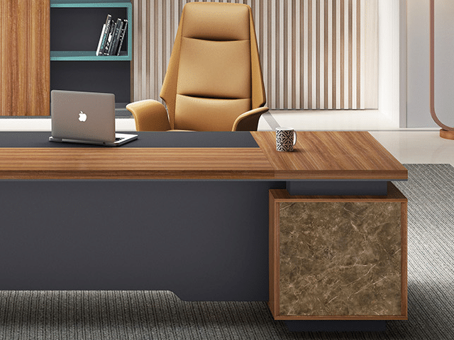 Le bureau de direction HBA01-2220 R/L a été conçu pour répondre aux exigences des environnements professionnels haut de gamme. Alliant modernité et sobriété, il s’impose comme un mobilier représentatif, capable d’affirmer le prestige d’un espace de travail sans être trop imposant. Son design contemporain, aux lignes épurées, reflète l’élégance, la culture d’entreprise et le style individuel du dirigeant.