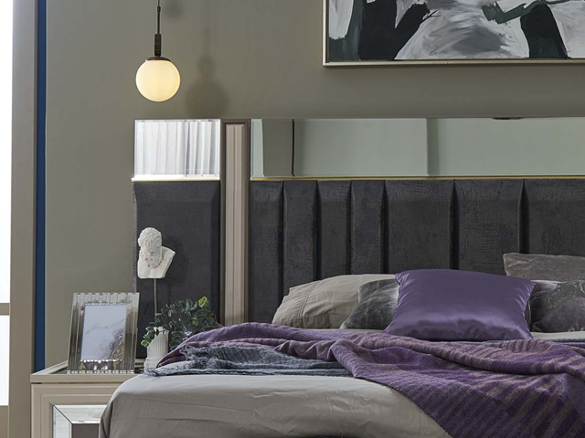 CHAMBRE A COUCHER 180X200 COMPLETE PORTES BATTANTES RUBY BEIGE GRIS Z