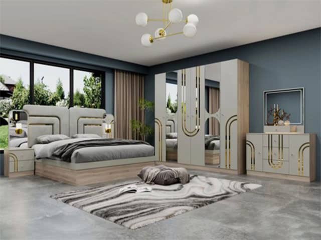 Avec des dimensions de 2200 x 540 x 2200 mm, cet ensemble de chambre à coucher convient aux espaces de taille moyenne. Sa conception permet une organisation efficace de la pièce tout en assurant un confort d’utilisation au quotidien.