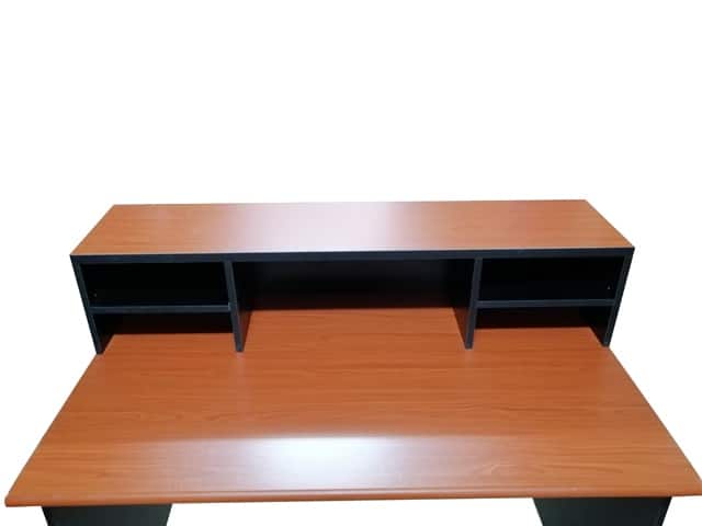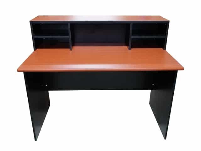 Fabriqué en mélamine, le comptoir présente une finition en cerisier clair qui apporte une ambiance chaleureuse, tandis que les accents noirs ajoutent une touche contemporaine. Sa conception soignée permet une utilisation optimale de l’espace, tout en garantissant une durabilité à long terme.