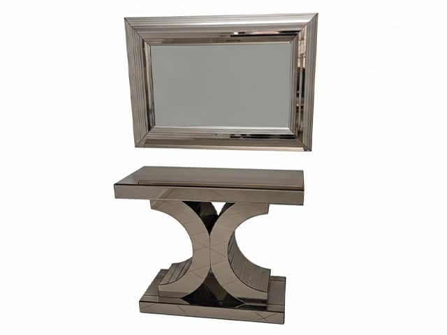 La Console ALFA 120059 Bronze est conçue pour apporter une touche décorative et fonctionnelle à un espace intérieur. Sa structure en verre associée à un habillage miroir crée un rendu visuel adapté aux salons, halls d’entrée, couloirs ou bureaux.
