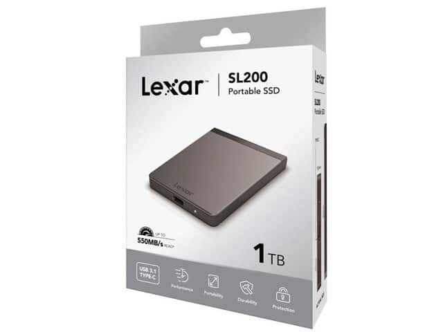 Le Lexar SL200 est équipé d’une interface USB-C / USB 3.1, garantissant une compatibilité maximale avec les ordinateurs Windows, Mac, smartphones Android et autres appareils modernes. Les câbles USB-C vers USB-C et USB-C vers USB-A inclus permettent une utilisation immédiate avec la majorité des appareils.