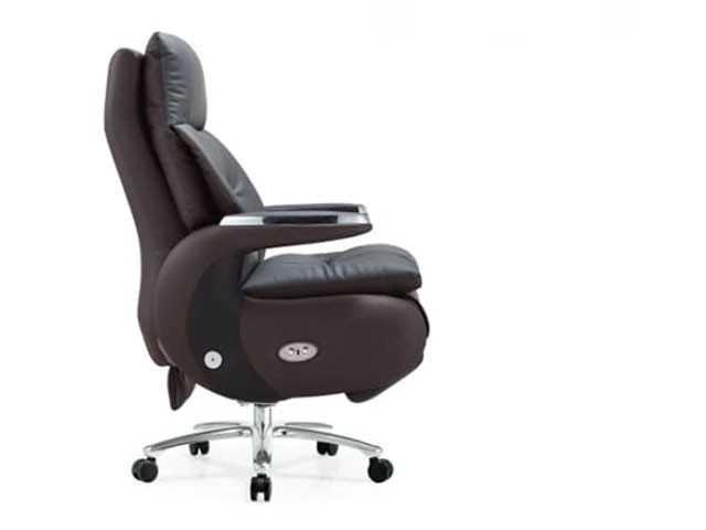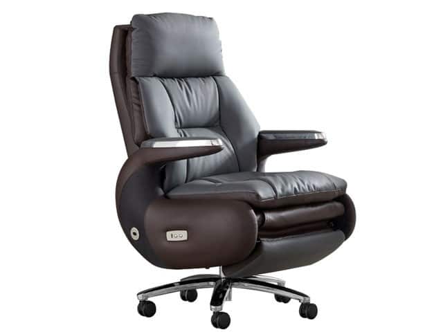 Le fauteuil Président Électrique A022 en cuir gris foncé offre un confort premium avec son système de massage intégré, idéal pour réduire la fatigue au bureau tout en apportant une touche élégante et moderne.