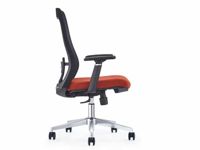 Le fauteuil est doté d’un réglage en hauteur qui permet d’adapter facilement la position selon le bureau et la morphologie de l’utilisateur. Sa base pivotante avec roulettes facilite les déplacements dans l’espace de travail, permettant d’atteindre différents points autour du poste sans effort.