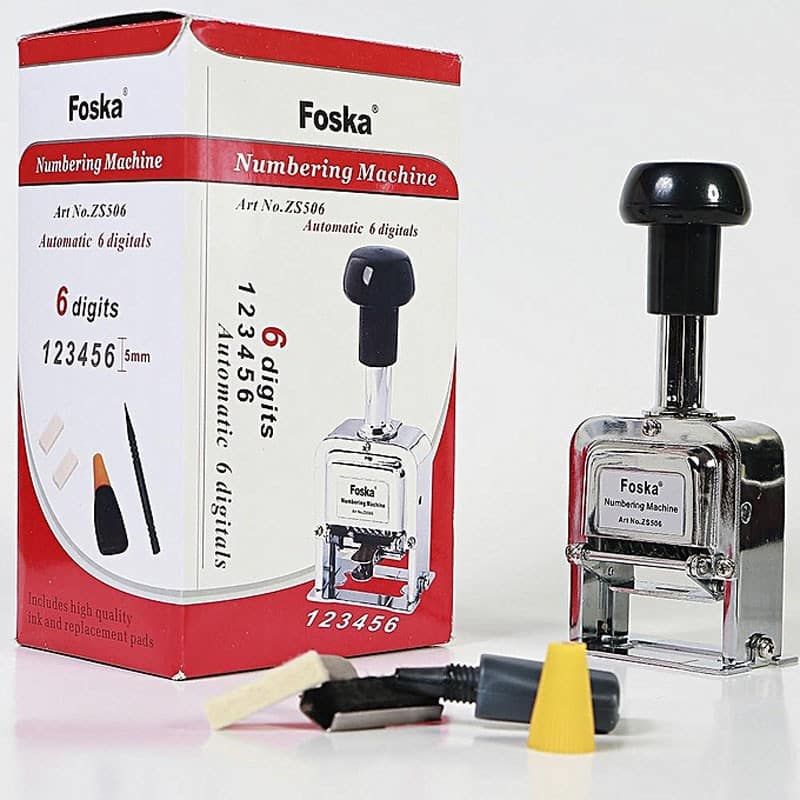 Solution complète comprenant machine à numéroter à 6 chiffres, encre, 2 feutres et 1 tige de numérotation.