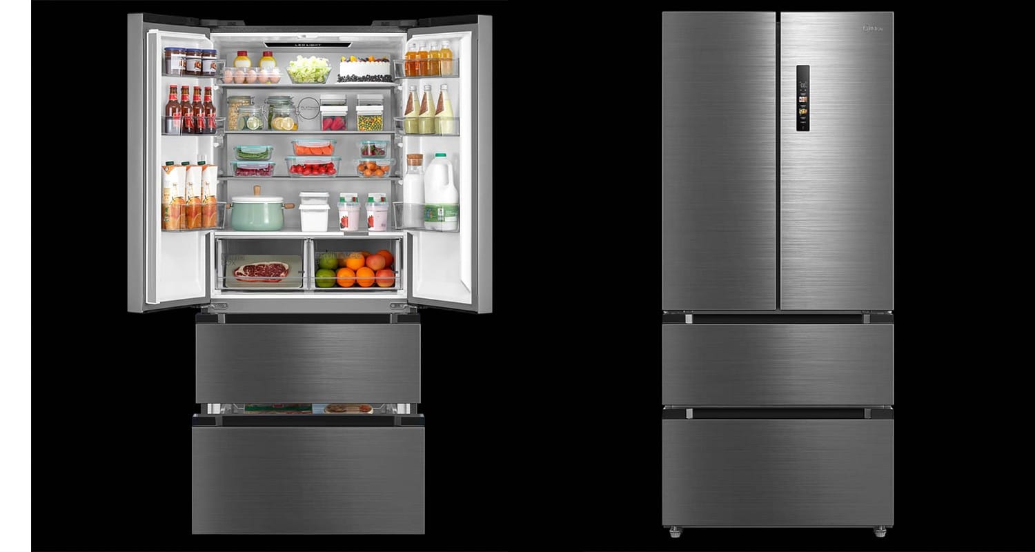 Avec son design moderne French Door, son éclairage LED et ses bacs de rangement intelligents pour fruits et légumes, le réfrigérateur MIDEA s’intègre parfaitement dans toutes les cuisines contemporaines.