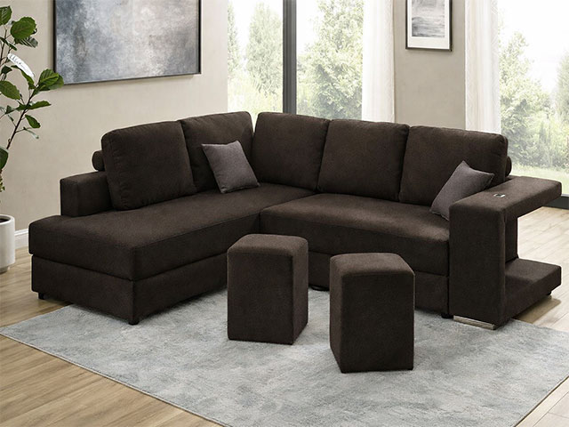 Salon tissu 5 places angle gauche (L) Karina – Couleur Monique 10 Marron foncé
