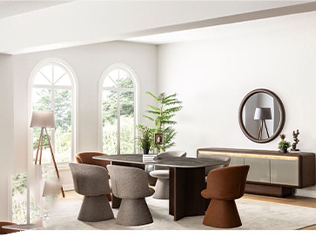 L’ensemble Table à manger ARMIS 6 places + Console miroir a été conçu pour répondre aux besoins des intérieurs modernes recherchant à la fois fonctionnalité et harmonie visuelle.