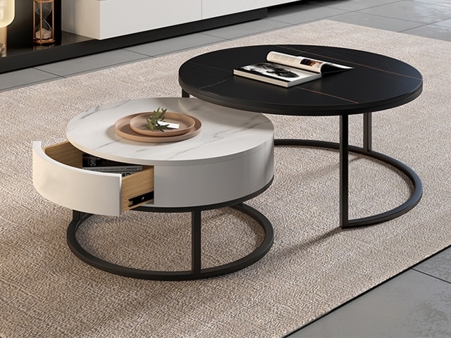 Table basse composée en marbre noir et blanc, au design moderne et élégant, idéale pour sublimer votre salon.