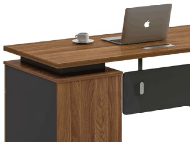 Fabriquée en mélamine de haute qualité, finition TP-904 marron et gris, cette table offre une excellente résistance à l’usure, aux rayures et à l’humidité, garantissant une durabilité optimale même en usage intensif. Son design sobre et élégant s’intègre facilement dans différents styles d’aménagement, apportant une touche professionnelle et soignée à votre espace de travail.