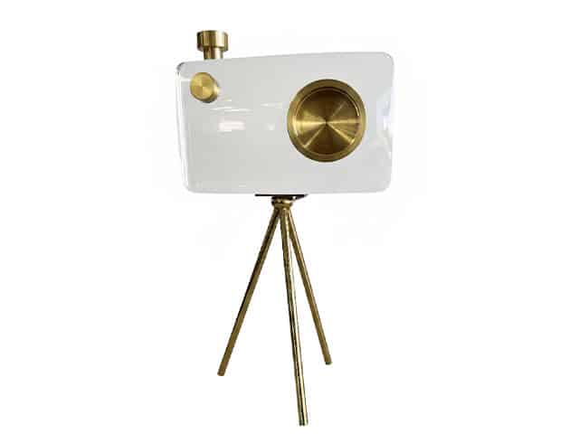 Le boîtier de chaque vase, en blanc brillant, offre un rendu épuré et contemporain, tandis que les détails dorés – objectif, bouton de déclenchement et molette – ajoutent une subtile note luxueuse. L’alliance du blanc lumineux et du doré chaud crée un contraste raffiné qui attire le regard et rehausse votre décoration.